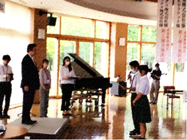 また出発式に先立って各中学校で集まった台湾への義援金の贈呈が行われました。
