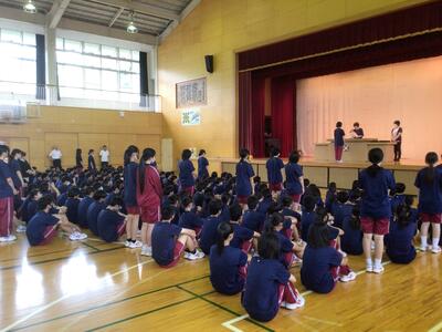 生徒会長候補2名、副会長候補5名の話をみんな真剣に聞きました。