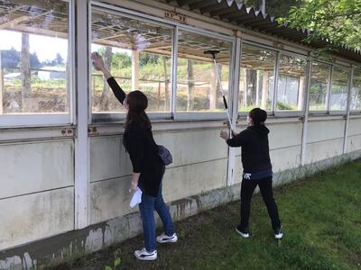 校庭の草取り,石拾い,体育館通路の窓掃除などをしました。