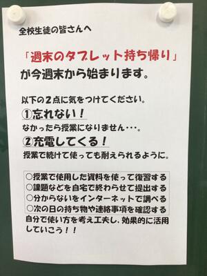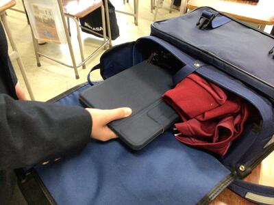 本校ではタブレット端末の持ち帰りを始めました。